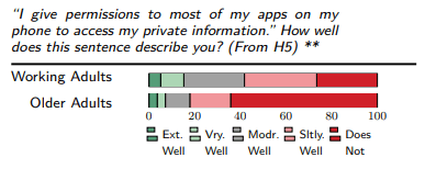 - Older adults are less concerned about giving permission to social media to access their private information (p<0.001)