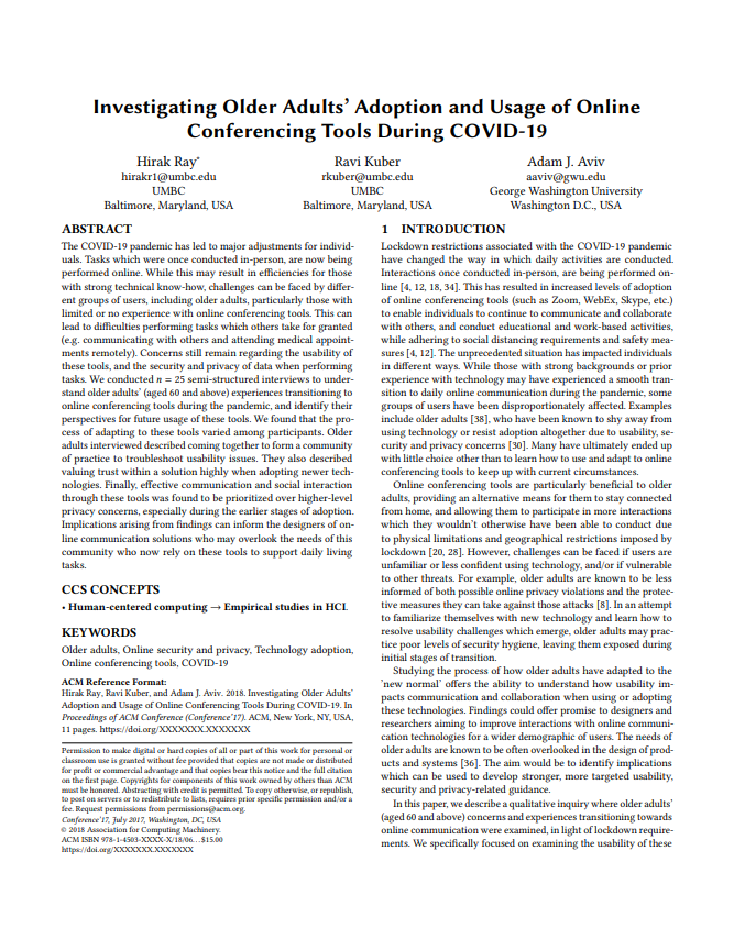 – Hirak Ray, Ravi Kuber, and Adam J. Aviv. 2022. Investigating Older Adults’